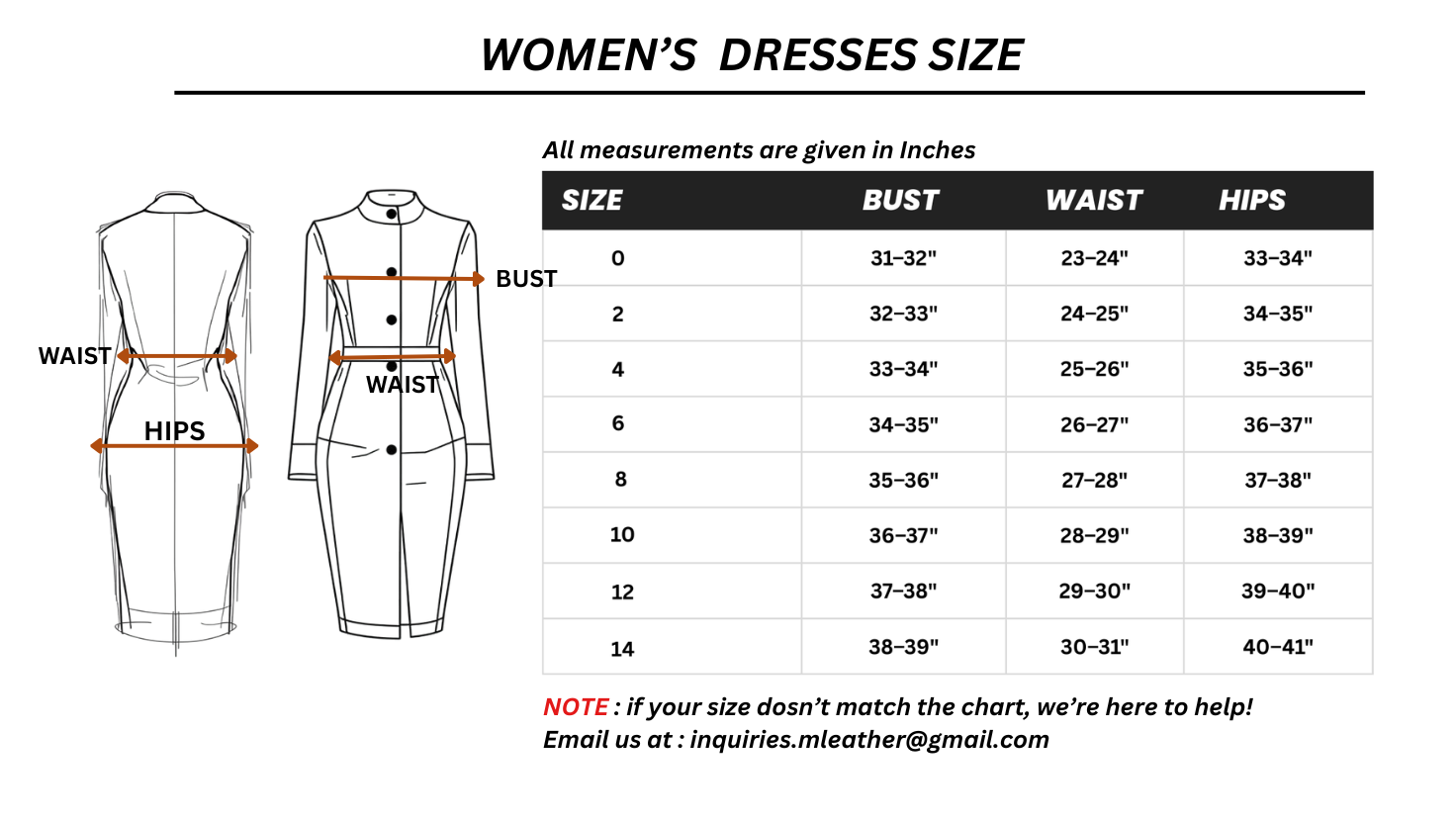 Still, minor differences can happen due to the fabric, design, or overall cut — so if you're unsure, we’re just an email away!