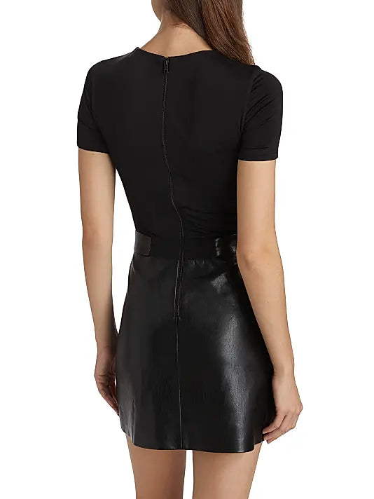Make a bold statement with the Chara Real Leather Pleated Minidress by M Leather Jacket. Crafted from 100% genuine leather, this dress features a structured bodice with a flattering fit-and-flare silhouette and finely pleated skirt. The smooth leather texture adds a modern, edgy touch to its feminine shape, perfect for night outs, parties, or special occasions.